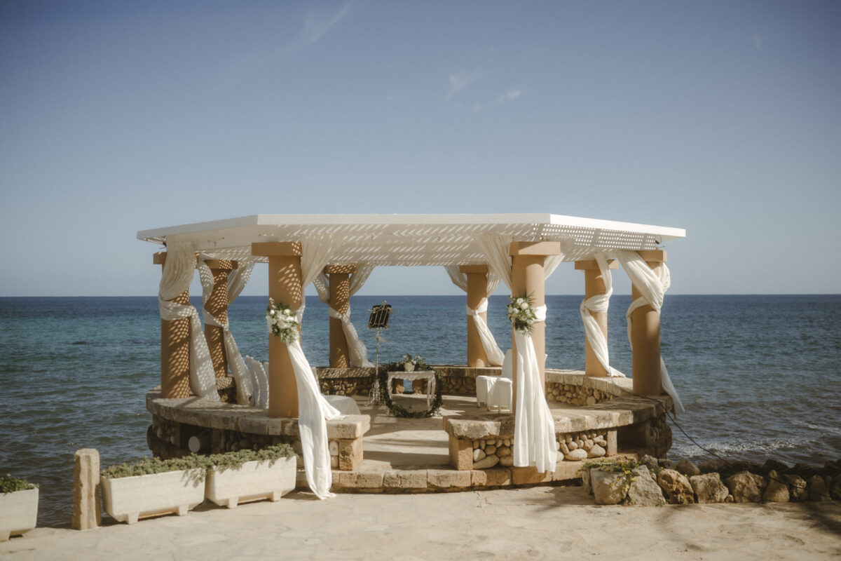 Plant ihr das Heiraten auf Mallorca am Meer im kleinen Kreis, so finden innerhalb es Pavillon ungefähr 10 Gäste Platz. Möchtet ihr in größerer Gesellschaft am Meer heiraten und diese Location nutzen, so würdet ihr als Brautpaar im Pavillon sitzen, während die Stuhlreihen für eure Gäste davor aufgebaut wären. Umwerfende Fotos eurer Hochzeit auf Mallorca wären in jedem Fall garantiert. Auch im Anschluss eurer Hochzeit würdet ihr natürlich noch traumhafte Bilder am Meer machen können, im Hintergrund sind die Berge zu sehen. Auch für Paarfotographie ist dies ein wirklich beliebter Spot.
